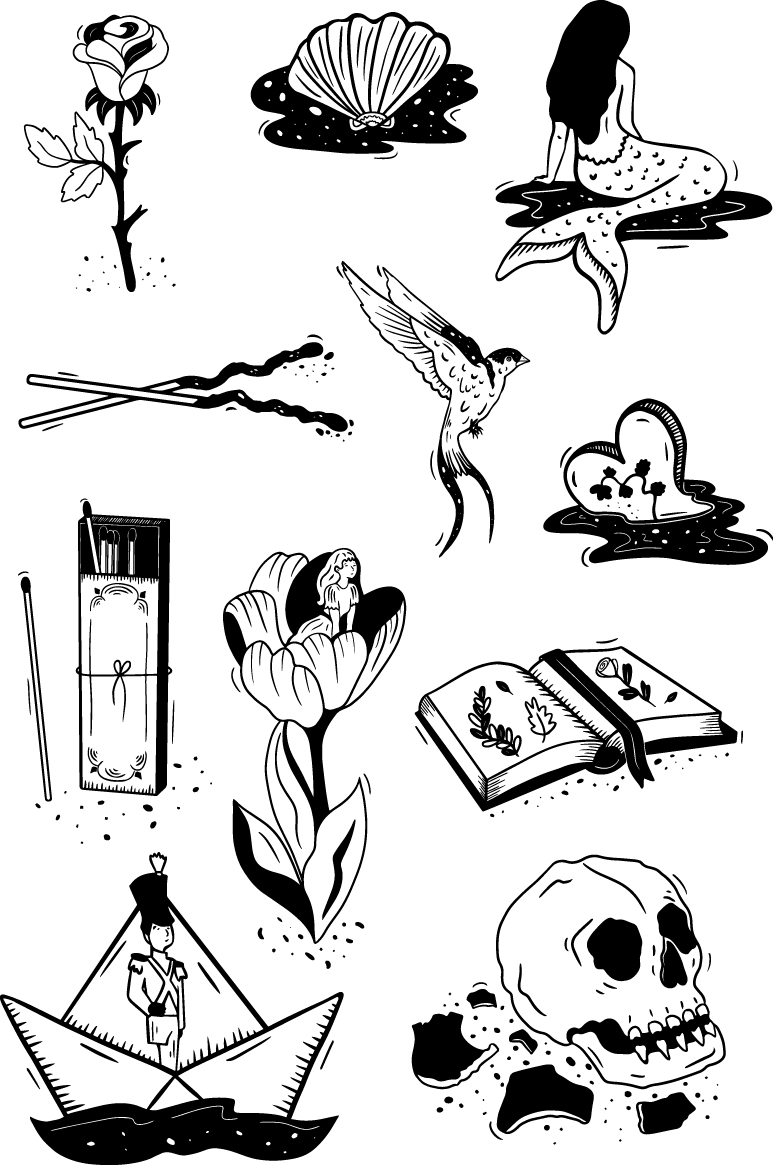 Blending classic typography with whimsical visual storytelling, I crafted a cohesive editorial system that balances elegance, atmosphere, and narrative emotion. The book features 14 original illustrations and a refined typographic hierarchy designed to enhance readability while celebrating the haunting charm of Andersen’s tales.